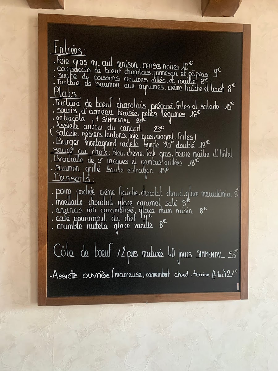 Small and traditional. Good food well cookef. Plat Complet is a great idea and reasonably priced at €17.50 for 3 courses.